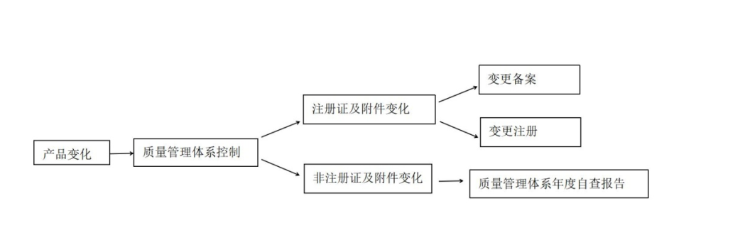 體外診斷試劑發生變化均應通過質量管理體係進行控製,如涉及醫療器械注冊證及其附件載明的內容發生變化,需進行變更備案或變更注冊(圖1)。