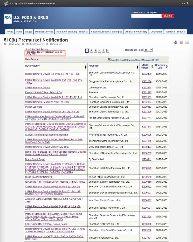 金飛鷹IPL脫毛儀案例庫中的6個510(k)號