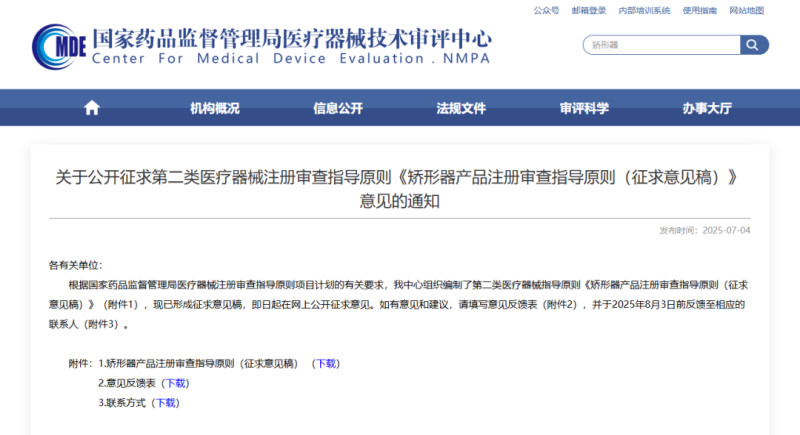 近日,國家藥監局器審中心發布《矯形器產品注冊審查指導原則(征求意見稿)》(以下簡稱《指導原則》),並向社會公開征求意見。