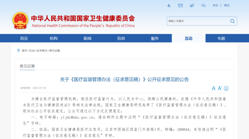 近日,國家衛健委發布《醫療監督管理辦法(征求意見稿)》(以下簡稱《辦法》),並向社會公開征求意見。