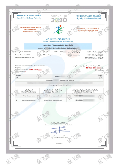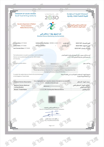 素有“中東土豪”之稱的沙特阿拉伯,雖然經濟規模和人均收入世界排名靠前,但卻是醫療器械產品極度依賴進口的一個國家。因此,近年來,沙特阿拉伯也是國內醫械企業“出海”戰略的一個重要目標市場。在脫毛儀沙特注冊領域,我們給大家展示7月26及27日新鮮出爐的兩張證,更多沙特注冊案例,可點擊右側文章☞美容麵罩沙特上市許可。